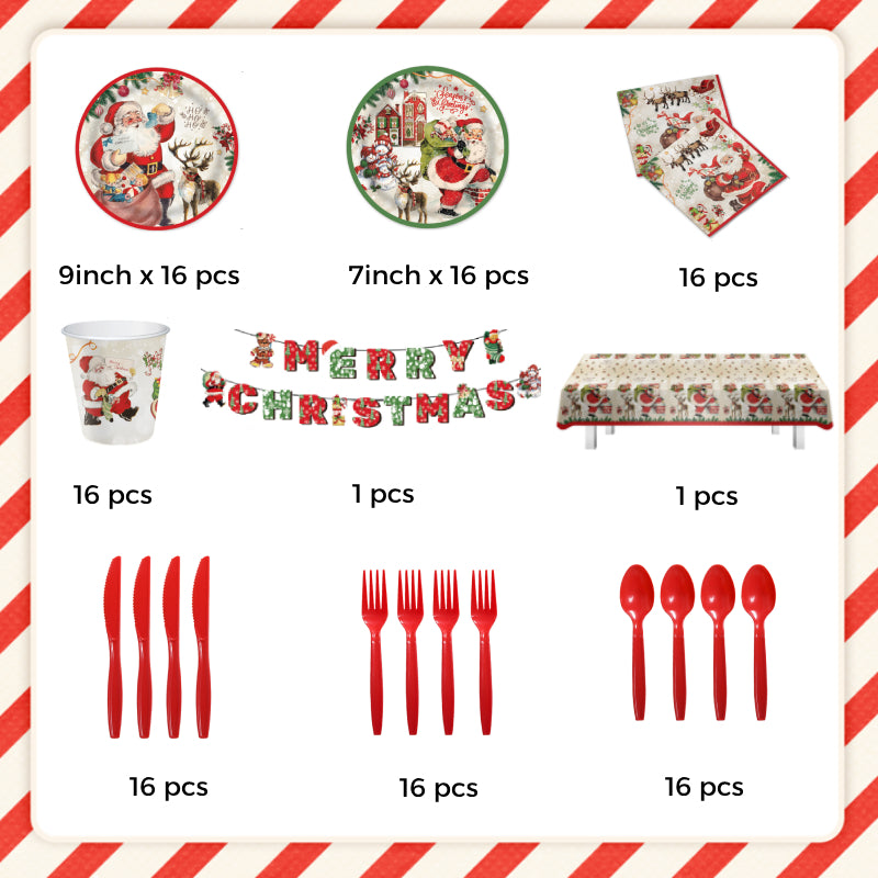 We offer everything you need for Christmas party dinnerware set, which can save your time and money; Thanks to the quality paper plate material, you can simply throw it out after use in a Christmas party or event a breeze, you needn't spend time to clean.
