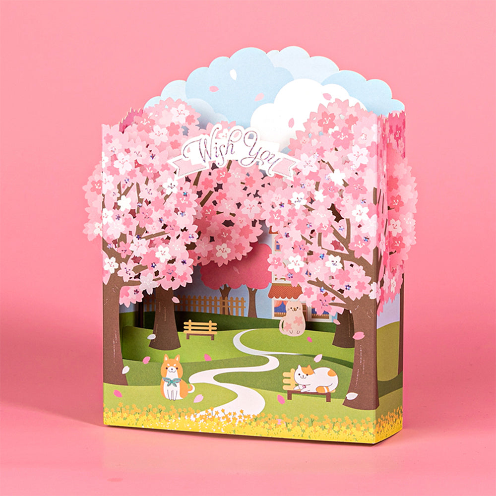 Creative 3D Pop Up Greeting Card Romantic Cherry Blossom Road Card