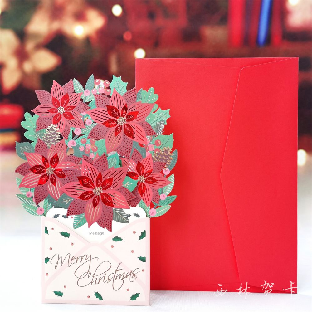 Creative Christmas 3D Pop Up Card Christmas Flower Pop Up Greeting Card