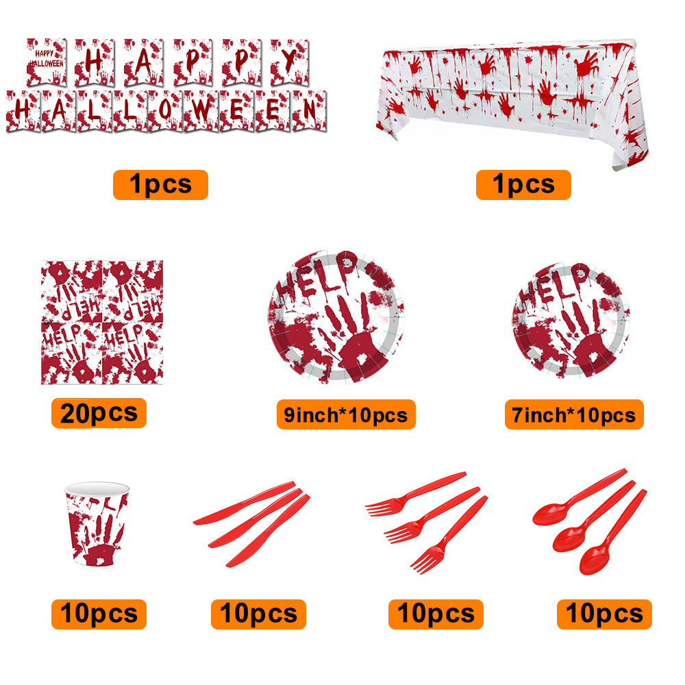 Halloween Party Bloody Hands Disposable Tableware Kits Halloween Party Decorations Supplies 82pcs