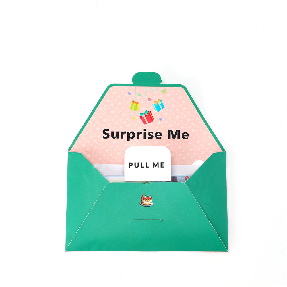Not only does this envelope pop confetti, but it also features funny birthday-themed cubes that spring up when opened. These cubes showcase a variety of funny and trendy designs that add an extra layer of playfulness to the birthday surprise.