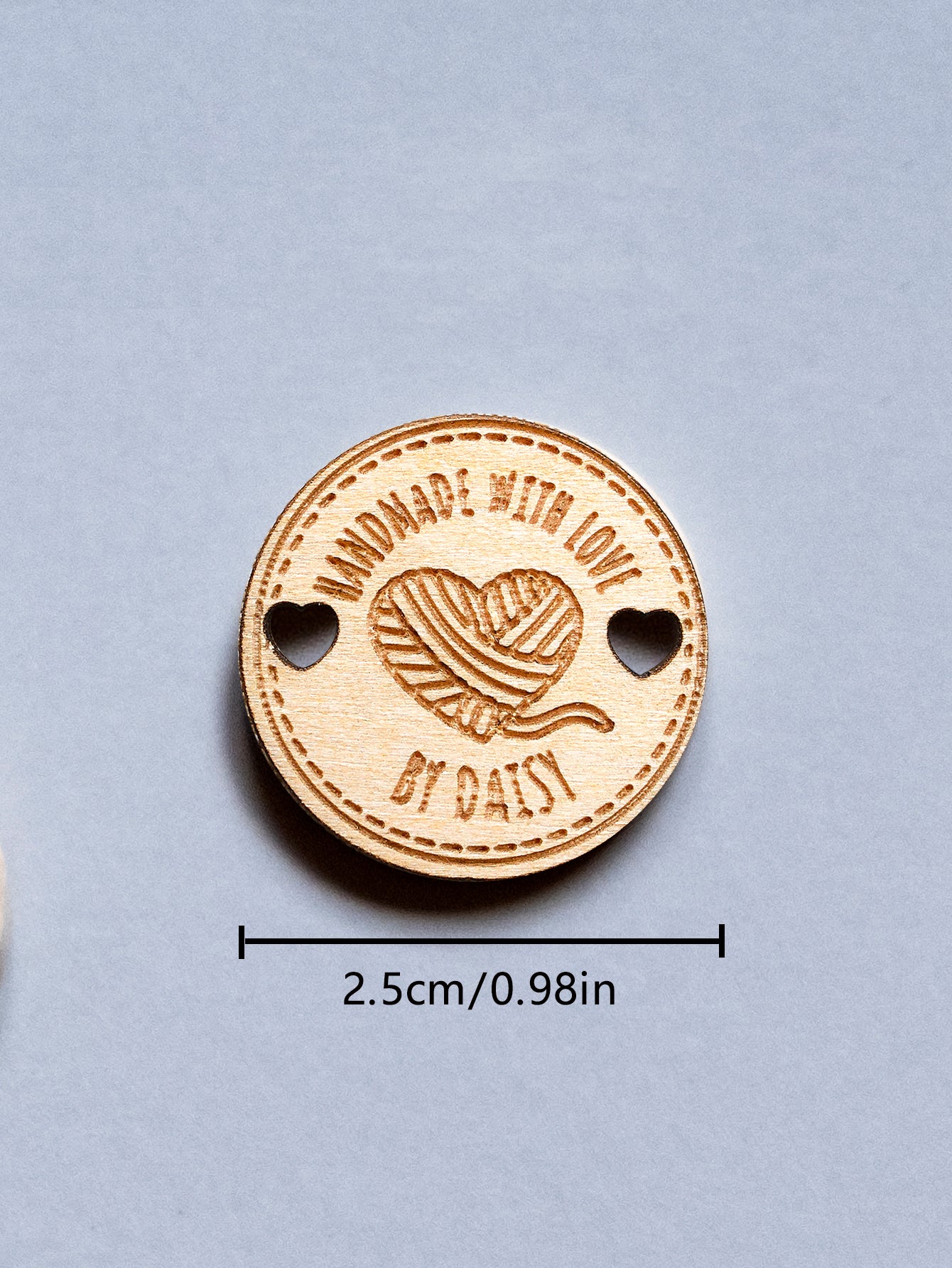 These charming wooden buttons feature a personalised name inscription, perfect for adding a personal touch to any garment. Whether for a mother, grandmother, or knitting/crocheting enthusiast, these labels make a thoughtful and unique gift. Set of 15 buttons included.